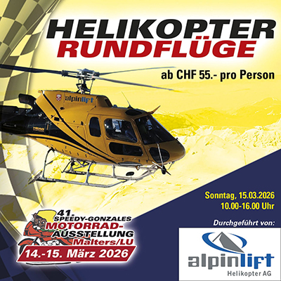 Organisiert vom Speedy-Gonzales Fan-Club, der sich seit 1982 für den Schweizer Motorradsport engagiert, hat sich die Ausstellung weit über die Region hinaus einen Namen gemacht. In der Sporthalle Oberei präsentieren über 20 Aussteller die neuesten Motorräder, angesagte Bekleidung und innovatives Zubehör – perfekt, um sich Inspiration für die kommende Saison zu holen.